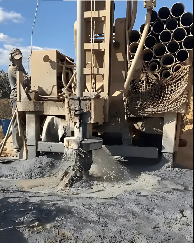 A perfuração é feita com equipamento especializado, avançando pelas camadas do solo até atingir o ponto de maior produtividade. O processo dura de 1 a 2 dias, dependendo das condições do terreno.
