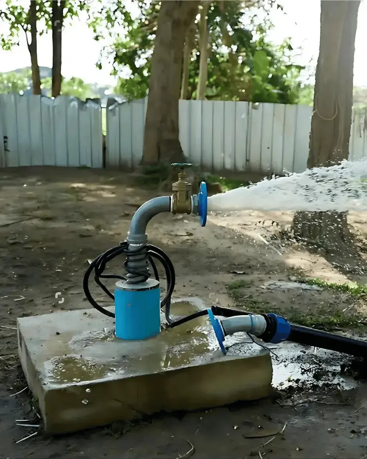 Com o poço pronto, instalamos a bomba submersa, cabos, conexões e quadro de comando, ajustando tudo conforme a profundidade e vazão encontrada.